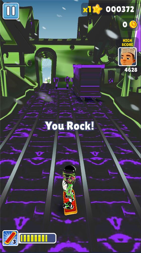 地铁跑酷az高层5.0版本是az战队专属的定制版本,根据地铁跑酷官方旧版本修改而来,游戏定制了一副全新的暗色地图,整体采用紫色为主的设计元素,同时空中还伴有飘雪的动效,可以给玩家全新的游戏体验。玩法和官方基本保持一致,通过控制角色躲避障碍并且拾取赛道上的金币,跑得越远所取得的跑分就越高,同时游戏提供了各种道具,助力玩家取得更高的分数,相比官方版主角杰克碰到障碍后还可以获取复活的机会,从而可以让玩家跑酷取得更高的分数,给玩家更好的游戏体验。另一方面,游戏定制了一款全新的杰克形象,身着迷彩装,还有多款免费的滑板可以自由选择,如果你是一名忠实的地铁跑酷粉丝,那么这款定制版可不要错过了哦,期待你的下载体验。