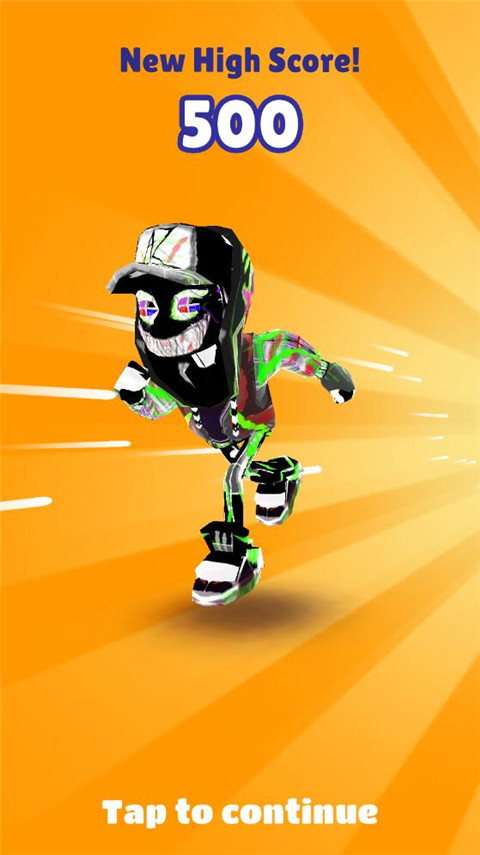 1、控制角色在地铁上驰骋,躲避所有的向你冲来的地铁,还要拾取粉色金币。
