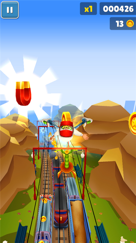3、多样化的障碍物和道具:游戏中充满了各种类型的障碍物和道具,玩家需要灵活运用跳跃、滑行和滚动等动作来应对挑战。同时,道具如磁铁、滑板和护盾等能够帮助玩家在游戏中获得更高的分数和更好的成绩。