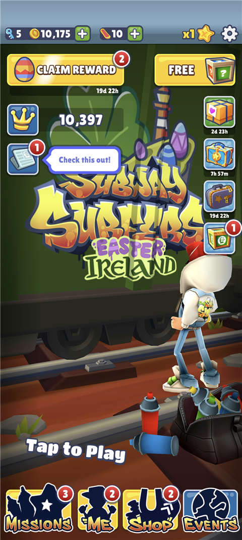 地铁跑酷爱尔兰版是一款引人入胜的跑酷游戏,其独特之处在于将原版游戏的惊险刺激与爱尔兰文化的丰富魅力相结合。玩家将有幸穿越于爱尔兰各个著名景点和街道之间,途中躲避追捕的警察,同时收集金币和道具。游戏不仅提供了精彩的奔跑体验,还通过特殊的角色服装、道具和场景设计,以及与爱尔兰传统节日和文化事件相关的活动和挑战,让玩家在游戏的同时领略到爱尔兰的独特风情与文化底蕴。地铁跑酷爱尔兰复活节国际服不仅充满趣味和挑战,更能让玩家在轻松愉快的氛围中了解和学习爱尔兰的文化,带来一场别具一格的游戏体验。