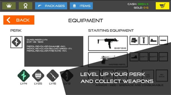 4、在开始之前,你可以选择你的装备,在战斗中拥有更强的战斗力;