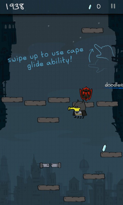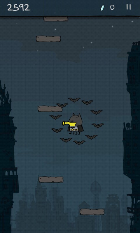 勇敢的小 Doodle 顺便拜访了着名的 DC 英雄蝙蝠侠,并趁机学了两招必杀技,穿上蝙蝠战衣带上蝙蝠侠号火箭筒,它来到了 Doodle Jump DC Super Heroes 的世界中。现在是超级英雄的时代,各式各样的英雄充斥在各个领域。在《涂鸦跳跃》的最新作品中,玩家将扮演蝙蝠侠的角色,一边跳跃一边消灭各路敌人。就像电影中的蝙蝠侠一样,《涂鸦跳跃之超级英雄》,也为主人公提供了一些强大的道具。