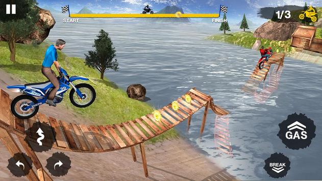 避免各种障碍到达自行车特技游戏3D的终点。特技自行车急转弯时要完美,否则你会掉出赛道。