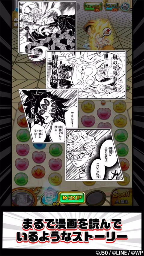 jump气泡英雄最新版是一款日本知名超人气动漫角色大集结的热血消珠策略RPG类型手游,《海贼王》、《银魂》和《七龙珠》等等动漫角色等你体验!游戏中玩家要组建自己的《JUMP》队伍,招募各个来自耳熟能详的漫画作品角色,透过消除气泡来发动攻撃,挑战各个关卡。围绕友情、努力以及胜利的冒险之旅,由《JUMP》的主角与您共同展开!