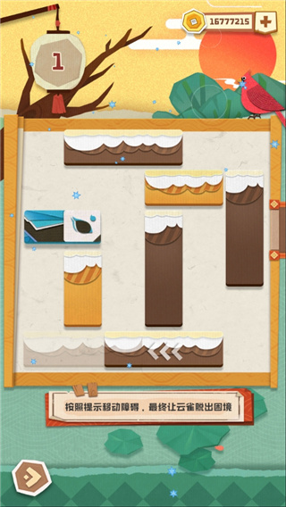 按照木块长度方向,移动小木块,最终让云雀能够突破障碍顺利逃脱。通过华容道来一次短暂而刺激的游戏旅程!