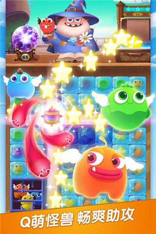 4、五颜六色的怪兽等待你去消灭,用你手中的魔法,不断将它们碾成碎片,完成挑战通关。