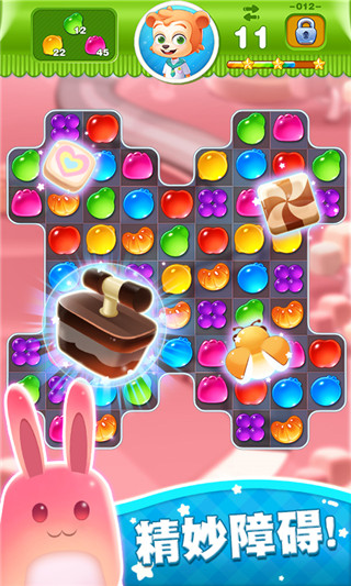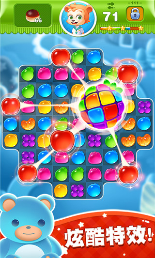 1、游戏简单易操作,画风和画风超级可爱,流畅的体验给玩家很棒的感觉。2、玩家在游戏中消灭糖果,获得超级分数获得三星的评价,超级好玩。