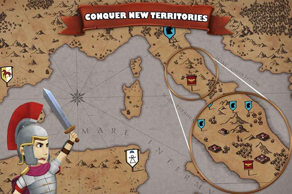 你可以点击地图并派你的部队去攻城拔寨,被攻占的城池会为定时为你进贡金币,你就用这些金币来构建更强大的军队吧。