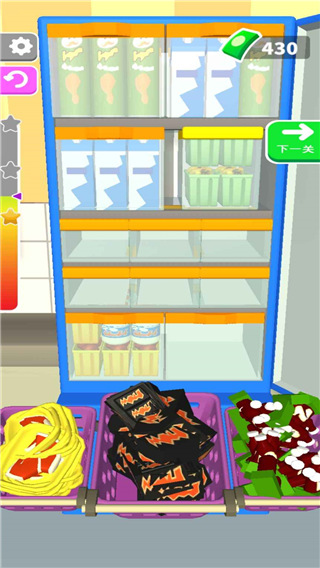 装满冰箱官方版是一款非常解压的益智闯关游戏,游戏简单易操作,玩家可以轻松上手,配合精美的画面,独特的玩法,使得游戏趣味性大大的提高了。这里的关卡十分的丰富,每一个挑战中的各种物品都会更加丰富,通过摆放这些东西让冰箱看起来更加的整洁,操作会非常的简单,规则十分的容易理解,让你畅快的玩耍并展现自己的思维,锻炼你的脑力。其中的主要玩法很简单,就是将物品陈列放入冰箱,听着感觉很轻松的样子,但是其中也是蕴含了大道理,并不是随随便便就可以放进去了,游戏的关卡会越来越有难度。开始使用冰箱货架上的不同物品、杂货、饮料和更多物品进行填充,并尝试将它们全部装满,一个个清空你的购物篮,找到完美的分类地点,冰箱补货随你喜欢。