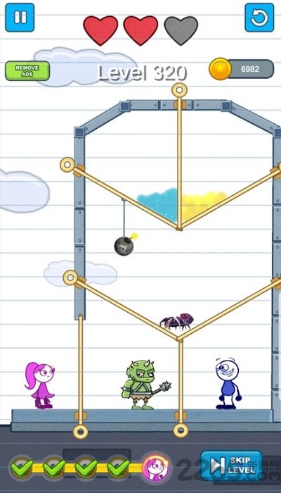 涂鸦拉针男孩游戏是一款简单好上手,轻松又有趣的拉针闯关小游戏,玩家们将会在本游戏中扮演涂鸦男孩,试图打败怪物躲避陷阱并成功解救自己的心上人,本游戏关卡丰富,画风可爱,需要仔细的思考但并不复杂,非常适合休闲娱乐,还很考验脑力哦!