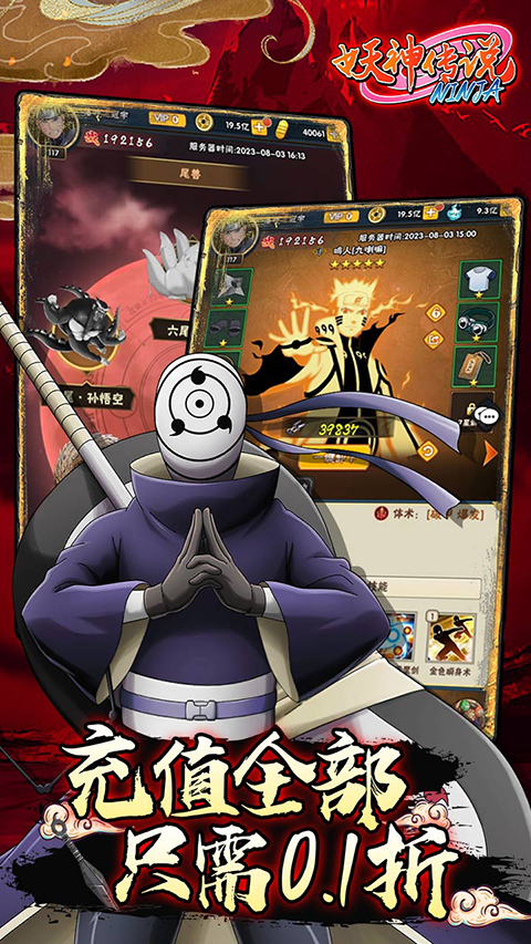 妖神传说0.1折手游是一款折扣类卡牌回合制游戏,玩家上线就能获得永久0.1折福利,全场充值畅享0.1折优惠,轻松解锁充值礼包,领取百倍充值返利。游戏内有着上百位忍者可以收集,每位忍者都有独特的技能和属性,完美还原火影动漫人物特色,让玩家可以自由培养喜欢的忍者角色,搭配出专属忍者阵容,轻松推图闯关,成就火影之路。此外,妖神传说0.1折手游内还有试炼、组织、尾兽等玩法可以解锁,让玩家体验更丰富的游戏乐趣。有感兴趣的小伙伴可以到本站下载体验一下!