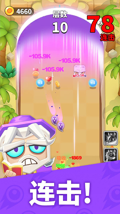 1、连击、打怪、弹射,多重玩法融于一体,多样化体验。