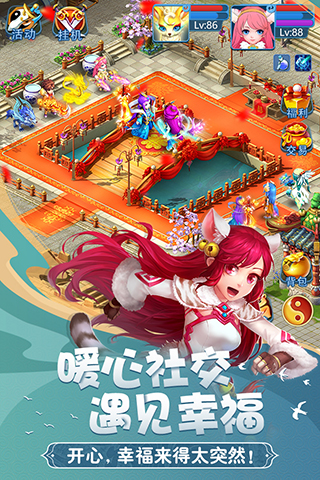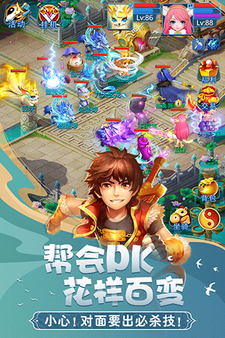 一键组队,随时队伍拉起。多种组队活动,固定队伍组起。半自动战斗,解放双手随时聊。便捷任务全自动,一键挂机只等PK活动。