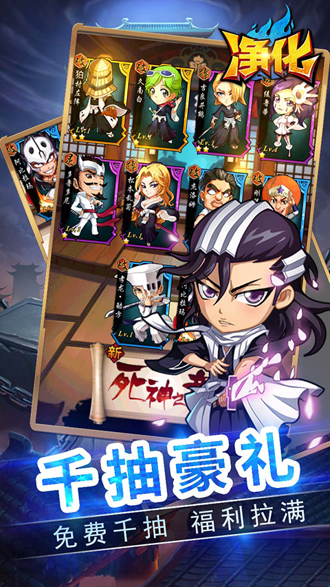 净化是一款放置回合制卡牌手游。游戏高还原度热门动漫死神,采用经典动漫剧情,Q版死神角色,精美人物立绘,给玩家带来极致的视觉体验,让玩家可以沉浸在死神世界之中。游戏内有着丰富的死神角色,每位角色都有独特的技能和属性,更有独特的死神羁绊可以激活,让玩家可以自由组合搭配,组建出强大的死神队伍,轻松推图闯关,击败各种强力BOSS,获取丰富资源奖励。