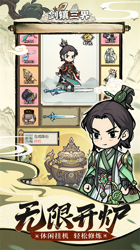 剑镇三界是一款魔性修仙游戏,以古代仙侠故事作为背景,魔族威胁三界,主角为了三界的和平与安宁,毅然踏上了消灭魔族的道路。在这里你将开启神奇的鼎炉,获取人物经验、铜币、绝世装备,助你修仙证道!