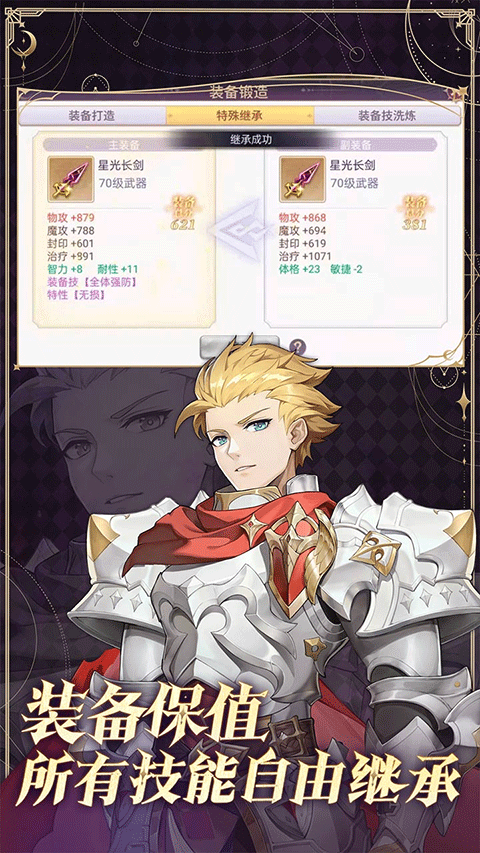 随时随地继承原有装备的特性和特技,特技不满意还能重新洗练,妈妈再也不用担心我们装备浪费啦!