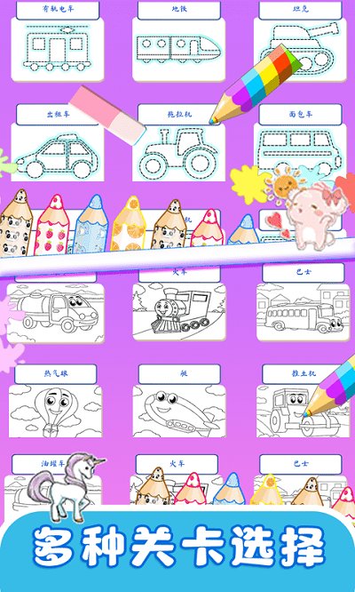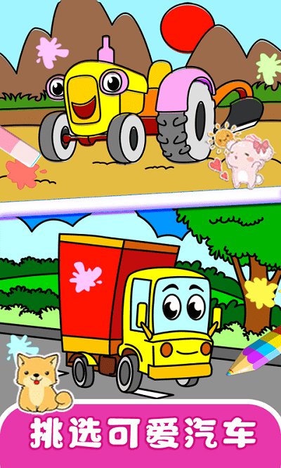 游戏画风卡通,玩法丰富有趣。不仅有汽车、小动物、烟花等趣味的场景,还可以尽情发挥想象力,绘画出各种各样的个性涂鸦作品。游戏轻松休闲。