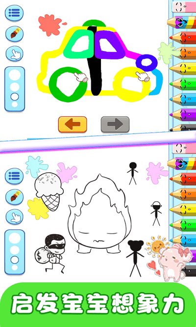 让宝宝知道,自己画的东西是有用的,使他们的心理得到满足,兴趣得到培养。宝宝巴士涂鸦游戏正是这样发挥宝宝想象力的应用,它可以将宝宝的想的东西变出来,让宝宝知道,自己画的东西是有用的,使他们在心理得到满足,兴趣得到培养。