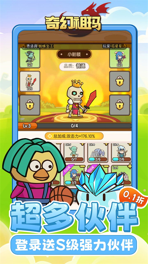 通过召唤获得装备、技能、伙伴可大幅度提升战力。