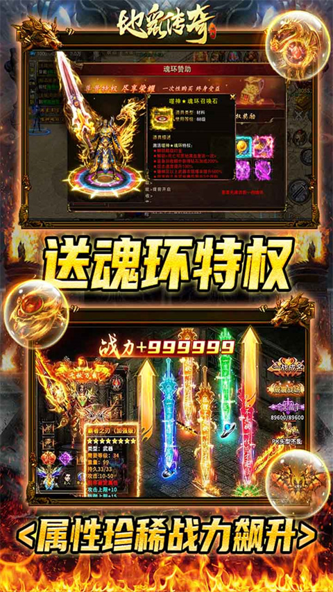 3.首充武器——「龍子无双<天火巨剑,获得刀刀16800点吸血属性,搭配上狂暴之力的刀刀切割属性,打怪效率简直不可想象!再领取魂环赞助赠送的无限制超经修为丹,快速提升转生优势!