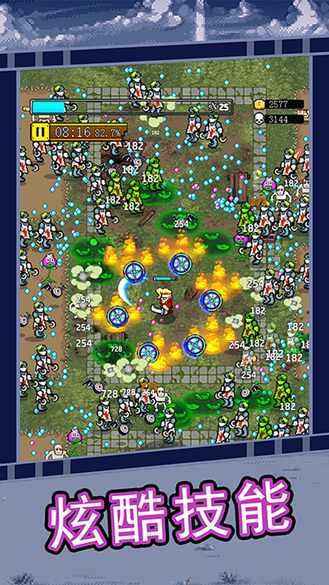 2、爽快割草玩法,技能自由选择,解压又好玩。