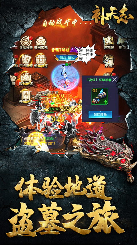 补天志是一款经典摸金放置盗墓手游。玩家进入游戏后可以在摸金猎人、卸岭狂徒、发丘术士三大职业内选择自己喜欢的职业开始盗墓摸金之旅,每种职业都有丰富的技能和装备,玩家可以自由搭配选择,大幅增加角色战力,轻松消灭各种墓陵怪物,夺得宝物,发家致富。