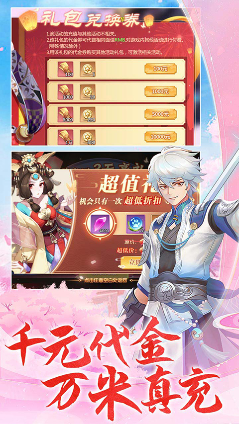 2、千元代金、万米真充勾玉,独家版本福利,每日648充值免费送,进游爽拿嗨翻天