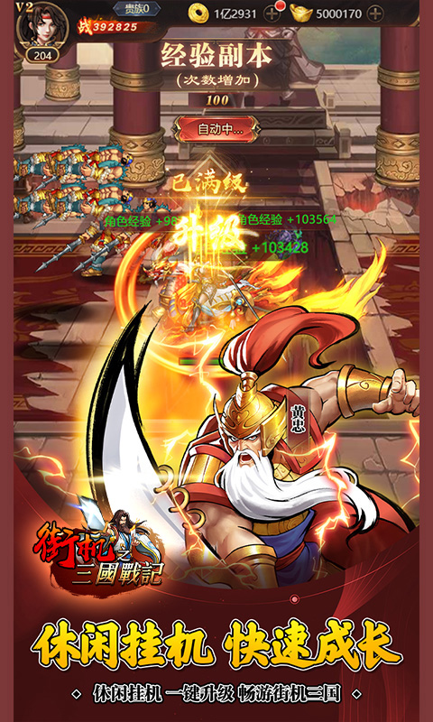 街机之三国战记是一款挂机闯关类街机手游。游戏采用经典三国题材,复古街机画风,高度还原三国各大战役以及人物形象,体验沉浸式的三国街机游戏体验。游戏内有着丰富的武将,每位武将都有独特的属性和技能可以激活,玩家可以培养自己喜欢的武将,将其升星进阶,打造出最强的武将队伍,过关斩将。