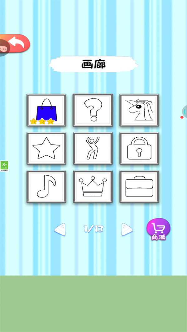在游戏画廊中有很多作品等待完成,每一幅完成的画都会有一个星级评价。