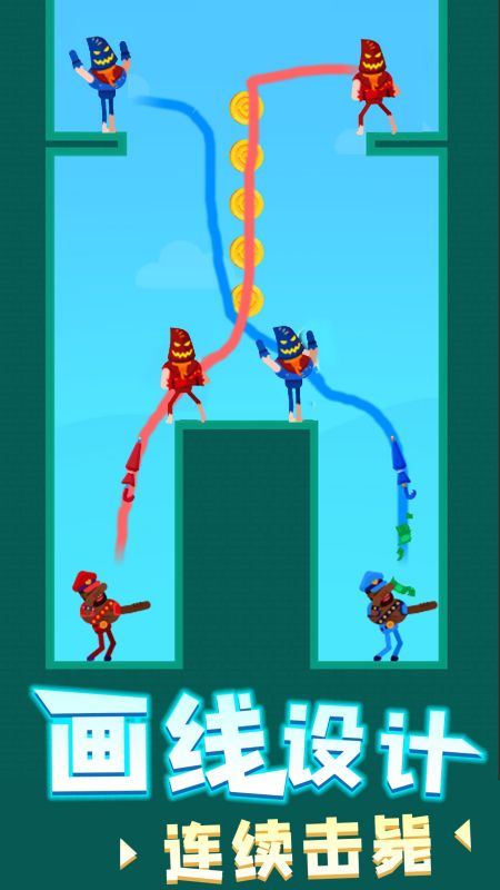 3、创新射击玩法给你新挑战,自由画线将各个不同地方的敌人射杀。