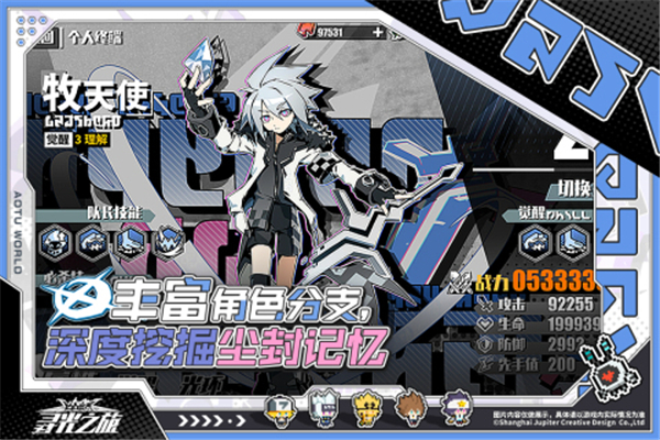 主角天使是一定要搞明白的机制,九个格子该角色独占一格,它的血量是最为重要的东西,想要获取满星的奖励最好将它的血量保证在50%以上,刚开始是只有概念这个角色的,技能也就是横扫没啥伤害,觉醒之后可以释放分身,进阶很快,六星战神角色,打开终端可以看到除了它以外还有六个其他样式的角色可以选择,解锁的方式是完成任务和精英关卡宝箱获取奖励之后解锁,满足条件之后可以使用元质觉醒技能,然后它们共享光环的效果,也就是除了进阶和觉醒的差异基本上在属性没有差距,所以在前两个条件差不多的时候可以随意改变自己的天使,并不会影响战力。