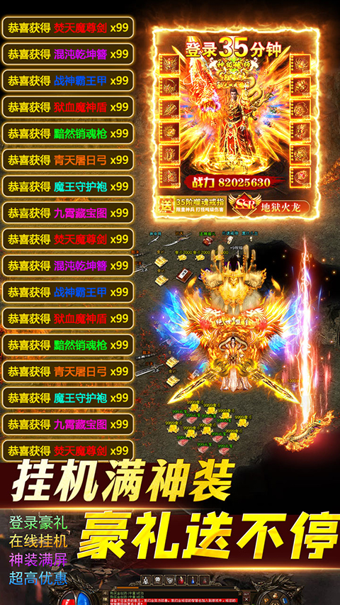 笑傲天龙传奇手游是一款传奇打金类游戏。游戏采用传奇经典单职业玩法,自动挂机打金,还加入了丰富的游戏内容,包括随机地图、多样副本等丰富玩法,给玩家带来更新颖的传奇游戏体验。游戏爆率极高,BOSS爆率高达20倍,击杀就能掉落各种高阶神装。