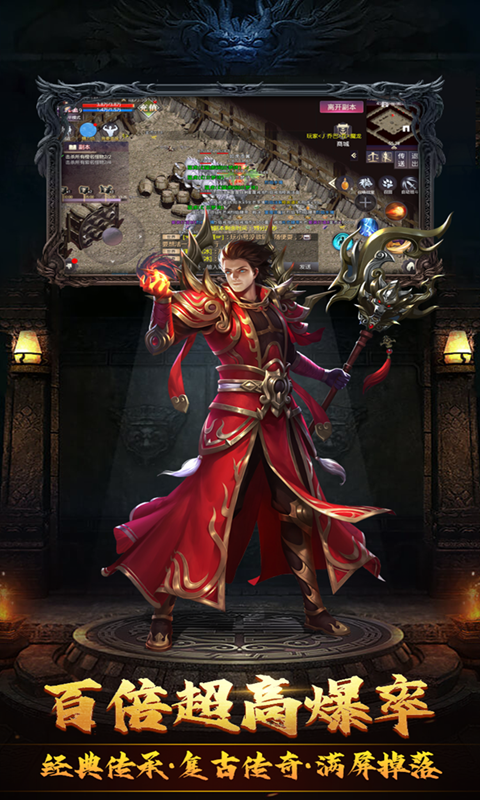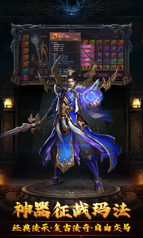 1、游戏采用经典三职业传奇玩法,战、法、道三职业自由选择。