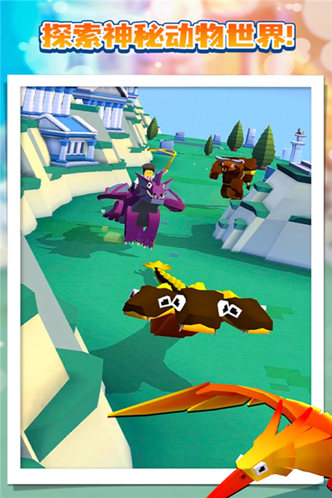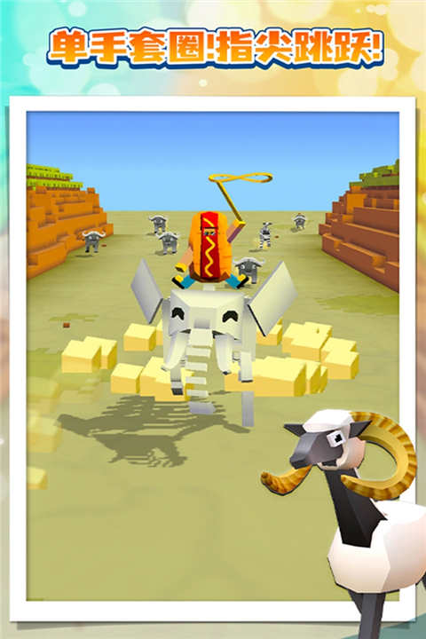 游戏中,你将扮演的是一名超级牛仔,而你的任务不仅仅是维护世界和平,更是要在热带草原、茫茫荒漠等凶险的环境下高速移动,并驯服各种珍禽异兽。作为一个“套马”的汉子,你要尽可能的套住动物,将它们带回飞船的“空中动物园”中养成;更多的动物将壮大你的园区,也可以吸引更多的游客前来参观。一款游戏多样玩法,满足了玩家不同的游戏需求,就是这么任性好玩。