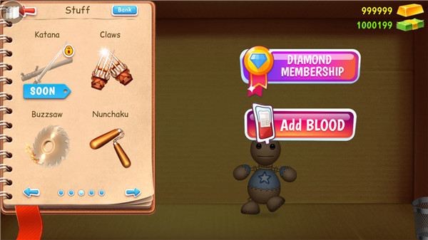 4、不停的打木偶人可以获得钱币,用于解锁更多的道具。玩家进入游戏就可以对木偶人做一系列的操作