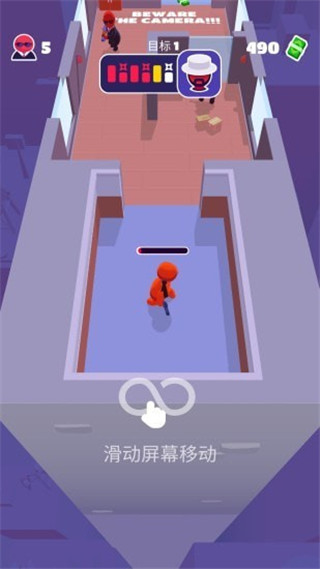 注意:不小心被摄像头扫到会触发警报,但影响不是很大,只有被光扫到并变成红色,敌人才会开始攻击,只需要离开光圈就不会被攻击,这也是游戏一个值得诟病的地方,怪物自主性太低,游戏过于简单,毫无挑战性。
