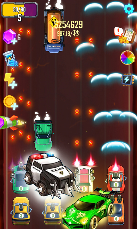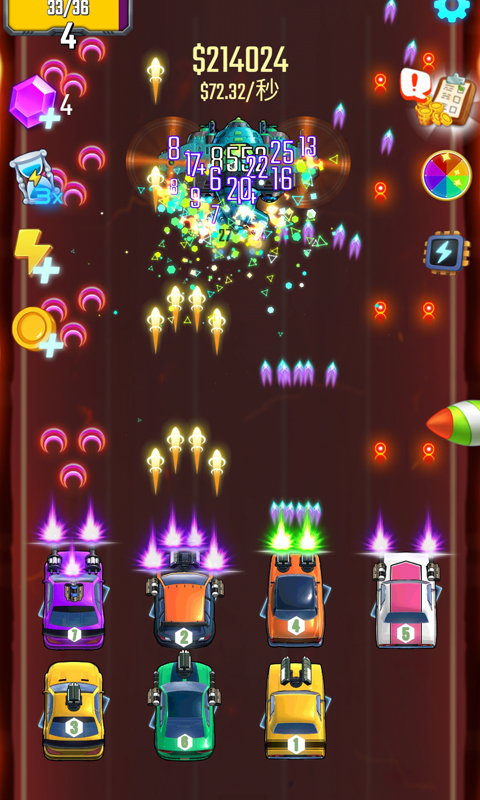 1、有多达 30 辆车供您解锁。每辆载具的攻击范围、攻击速度和伤害都不同,收益也不同。