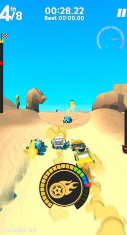 本作以刺激的多人竞速玩法为主,还以小型吉普车为主角,展开更刺激的越野驾驶比赛。