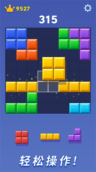 1、简单的手指移动可以在屏幕上启动,拖动下方方块到棋盘内完成放置。
