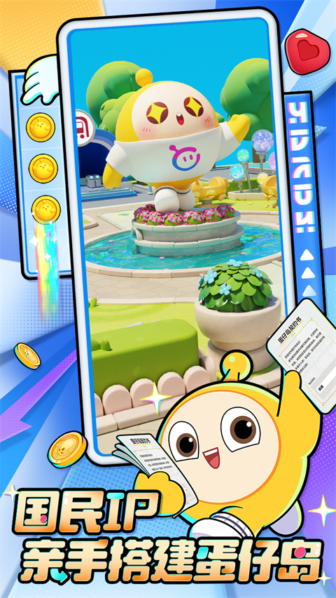 在每轮关卡通关后,玩家将会获得金币以及建造币奖励,金币可以用来续步、购买道具或者补充体力;建造币则可用于建设玩家专属的蛋仔乐园。从拓展乐园区域到升级乐园设施,在你的专属乐园里,一草一木都由你来决定,所有景观装饰皆任你挑选摆放,全方位实现你的乐园梦!