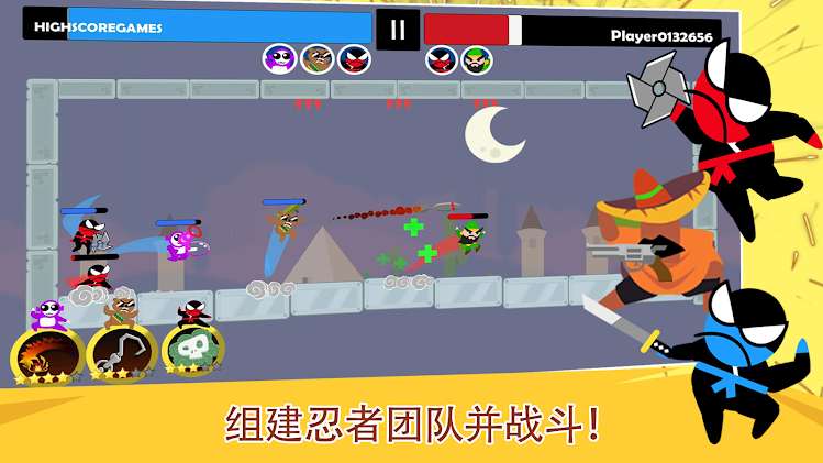 - Team Battle:建立一个忍者团队并进行3vs3对决。