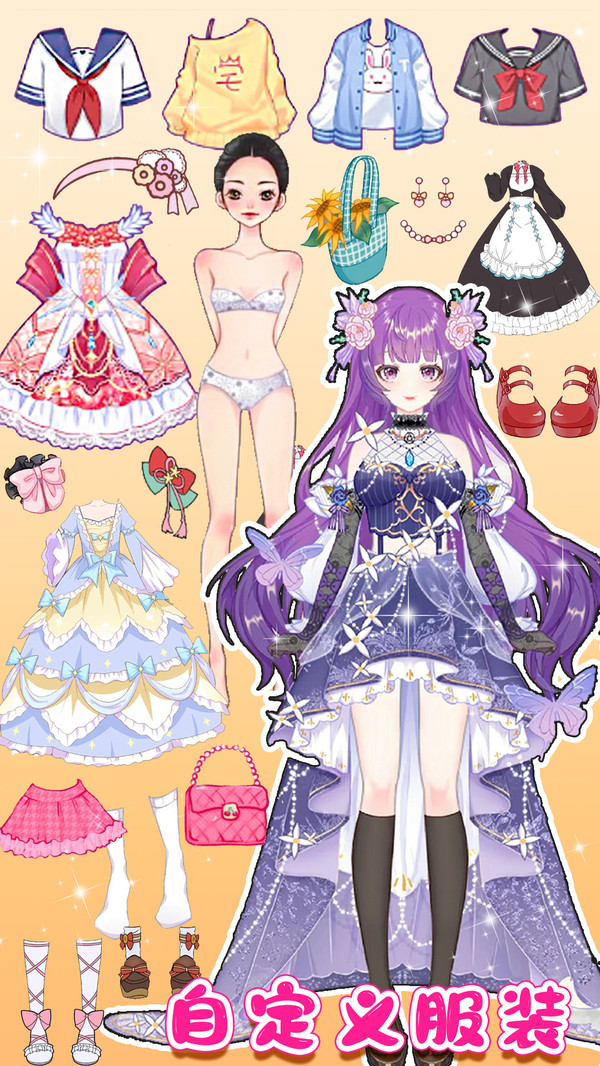 有许多不同的可爱的服装,所以你可以自由地穿它们。