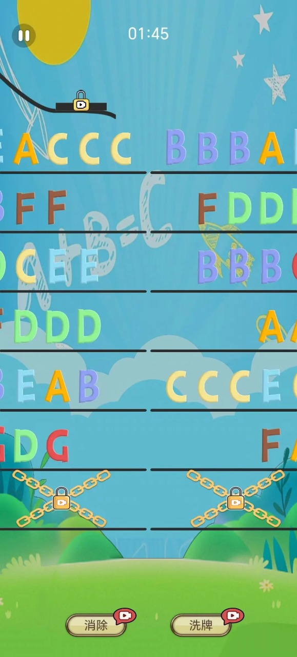 2、它相对应的字母进行匹配合并就可以进行消除解锁游戏当中赠送的道具。