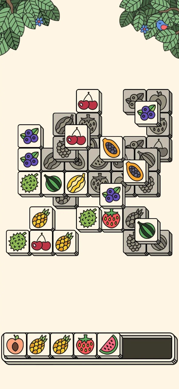 经典的消除玩法,三个一样的水果方块就能消除。