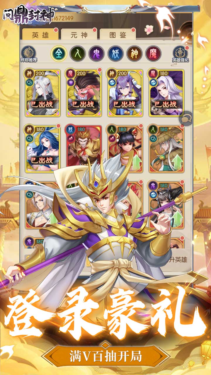 1、游戏内英雄分为人、鬼、妖、神、魔五种阵营,每种阵营都有强力的英雄可以培养。