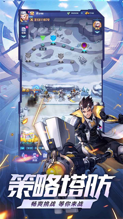 2、阵容自由搭配,策略塔防交互;