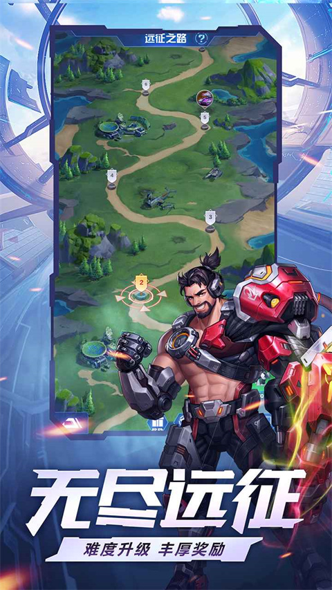 远征之路中所有关卡难度从易到难逐渐递增,主要考验指挥官们的极限战力。通关后可获得远征币、钞票与强化石。远征币可在远征商店兑换装备相关的商品。通过通关时的基地血量,会给与大家1-3星的评价,累计星数还可兑换大量装备相关奖励与招募卡,并且星数越多,每日奖励越丰富。
