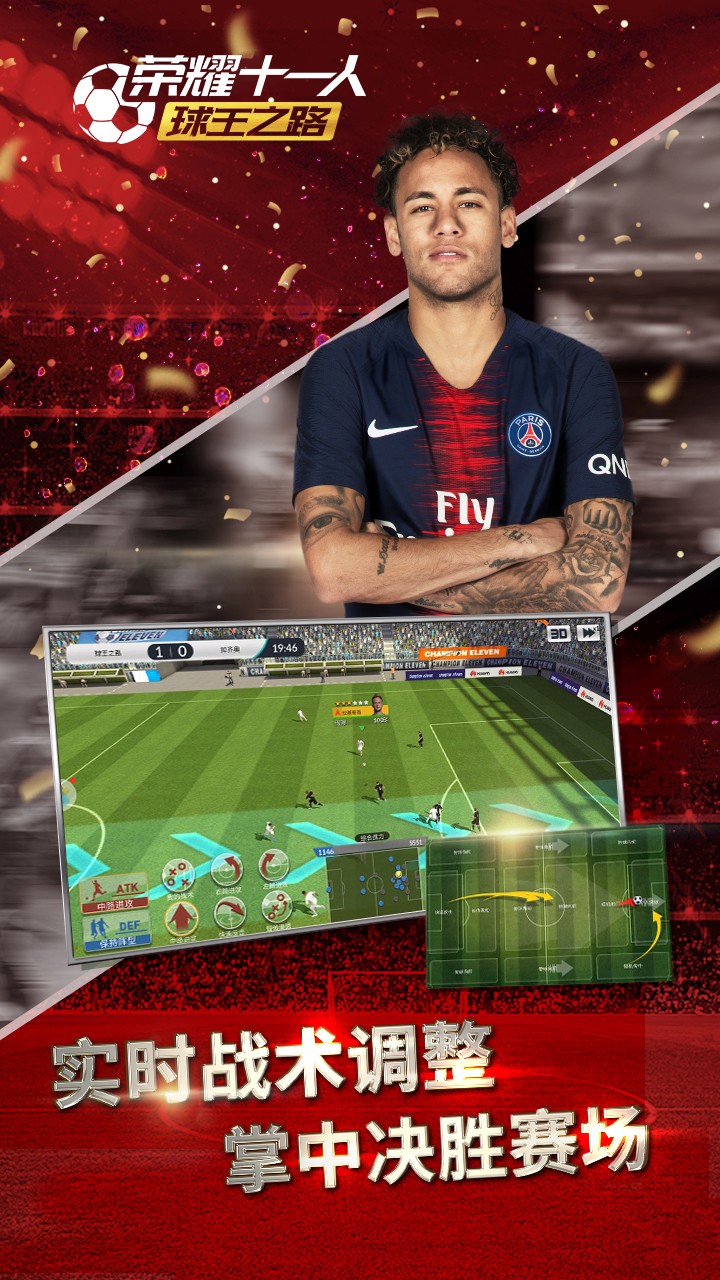 荣耀十一人果盘版是一款3D引擎制作的足球经营手游,官方的正版授权,让玩家们体验到更多的足球最前阵容竞技玩法,感兴趣的玩家赶紧来下载荣耀十一人果盘版试试吧。