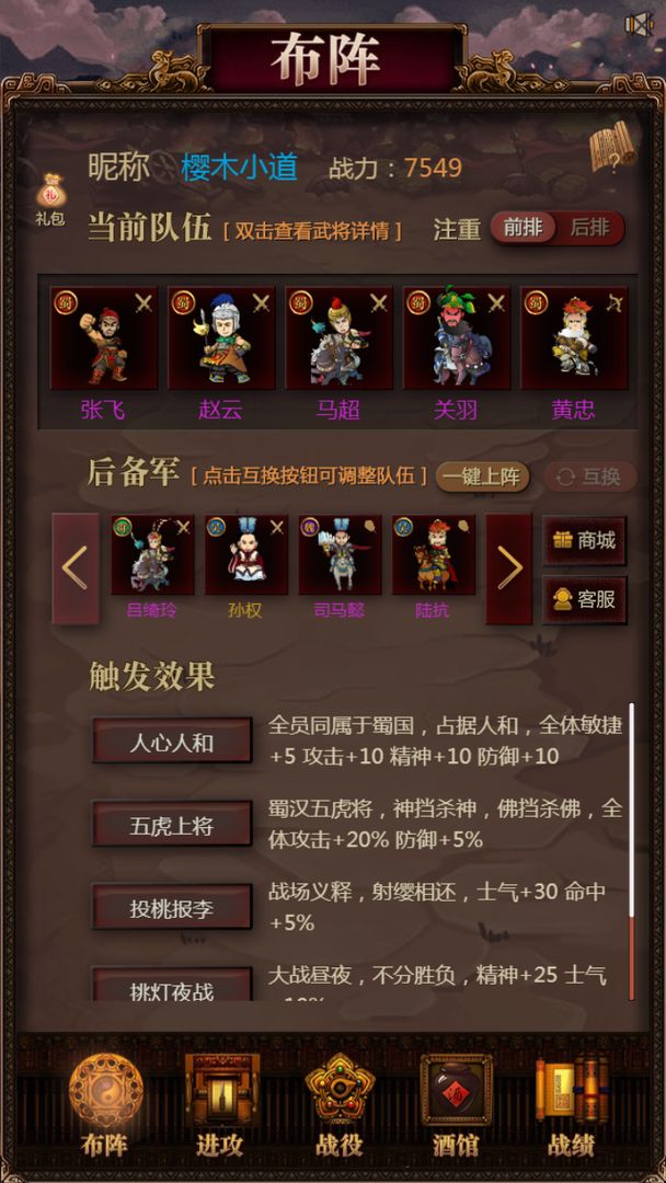 1、通过招募强大的将领,合理的阵容;