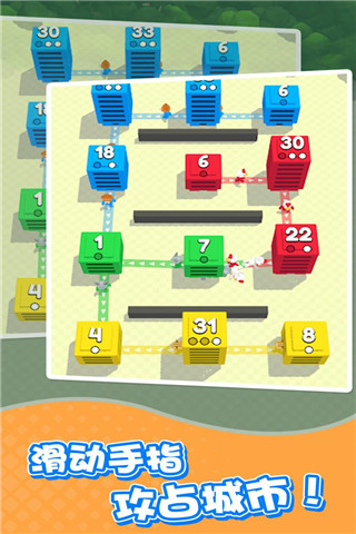 城市争夺战中文版(City Takeover)是一款有着卡通激萌画面风格的休闲游戏,游戏以较为轻松简单的战略玩法为核心,通过可爱的动物形象、简洁清爽的游戏画面、精心巧妙的关卡设计以及简单的操作,为玩家呈现出一款全新的游戏体验。在游戏中玩家需要把你的大楼互相连接起来,随着时间的增加,楼层也越盖越高,你需要不断的发展你的军队击败你的对手,制定战略运筹帷幄,攻占城市势在必得。